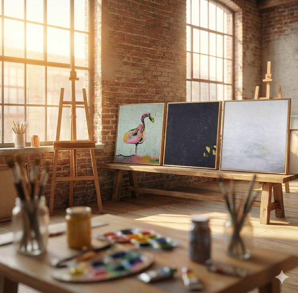 Ob in der Abstraktion oder in der figurativen Andeutung: Jedes Werk ist ein Instrument zur Regulation der Raumatmosphäre. Es ist der Versuch, den Lärm der Außenwelt durch kuratierte Frequenzen von Farbe und Form zu neutralisieren.